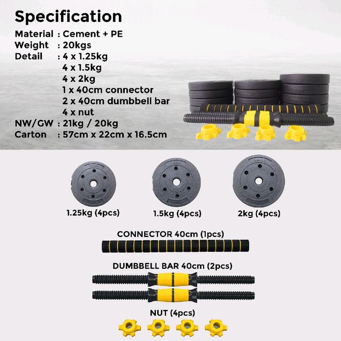 Twen Dumbbell Set 20kg Kuning