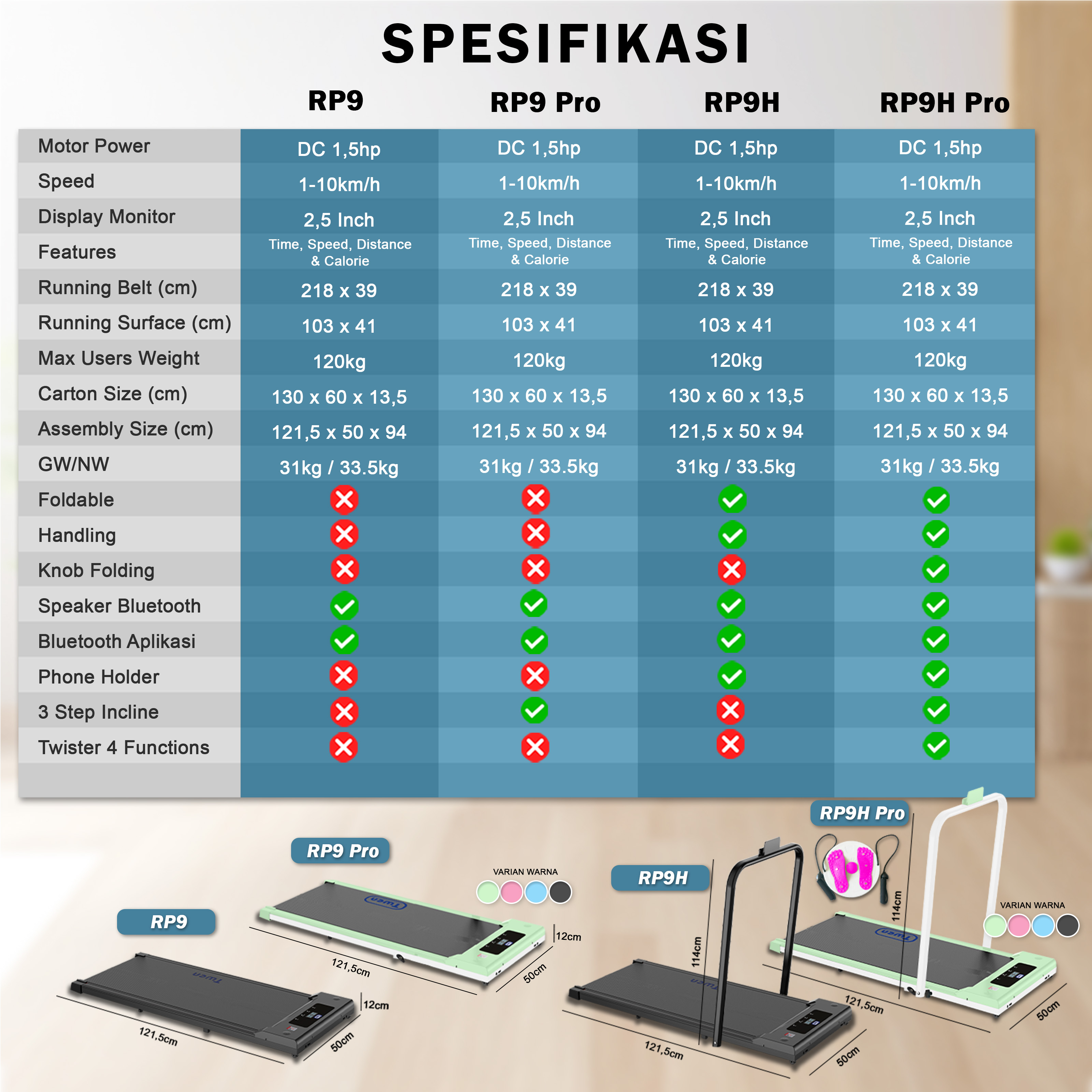 TWEN RP9H Hitam Running Pad Treadmill Listrik